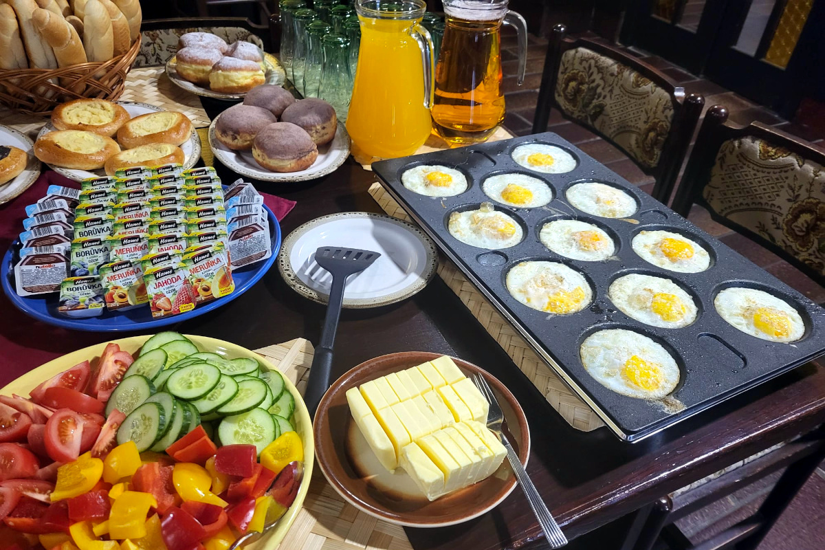 Ceny jsou uvedeny včetně bohaté snídaně, pro představu jsme vám vyfotili naši nabídku fromou švédského stolu, kterou nalezneté též níže na fotografiích.